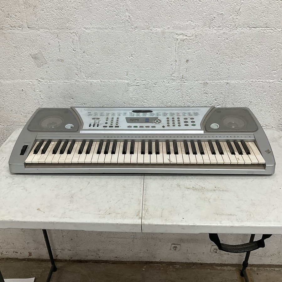 Portable 61-key electronic keyboard for music practice and performance in modern settings.