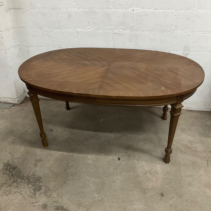 Antique oval dining table made of wood. Ideal for vintage and classic décor in dining rooms.