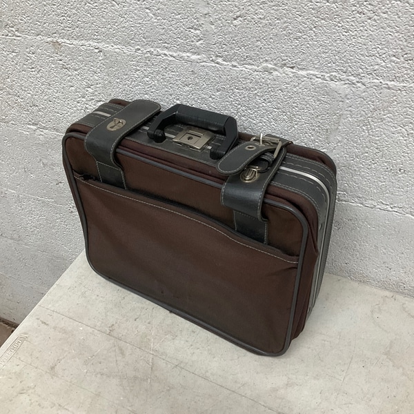Hard shell vintage briefcase with metal accents. Ideal for office or travel, adding a retro touch to your style.