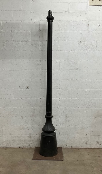 Classic urban street lamp post with a sleek black finish, ideal for outdoor decor in gardens or patios.