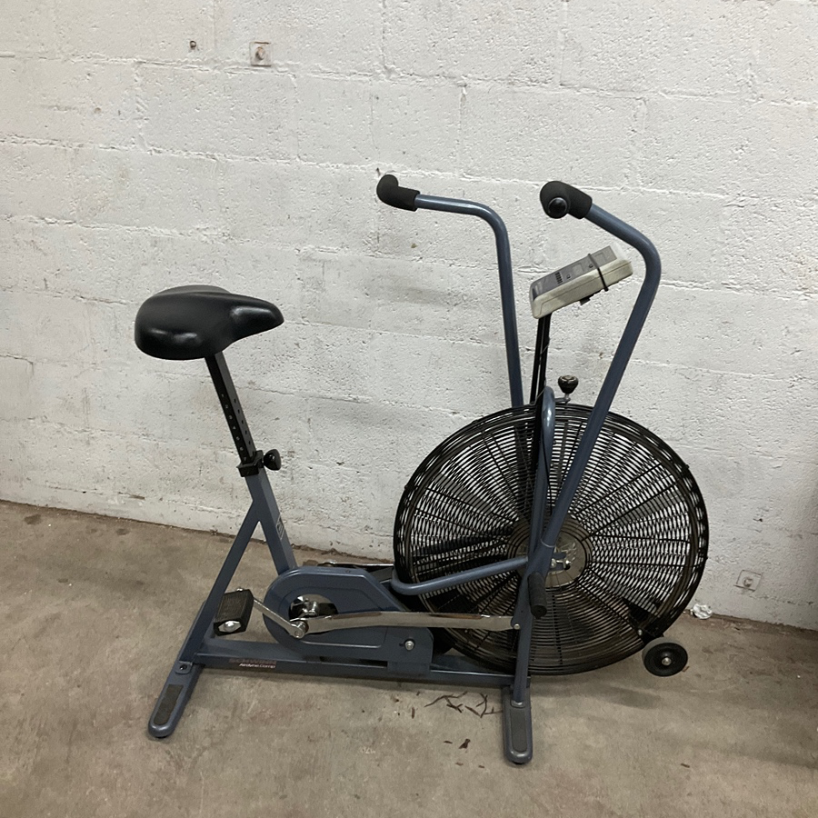 Sturdy exercise bike with air resistance and adjustable seat for indoor workouts. Ideal for home gyms.
