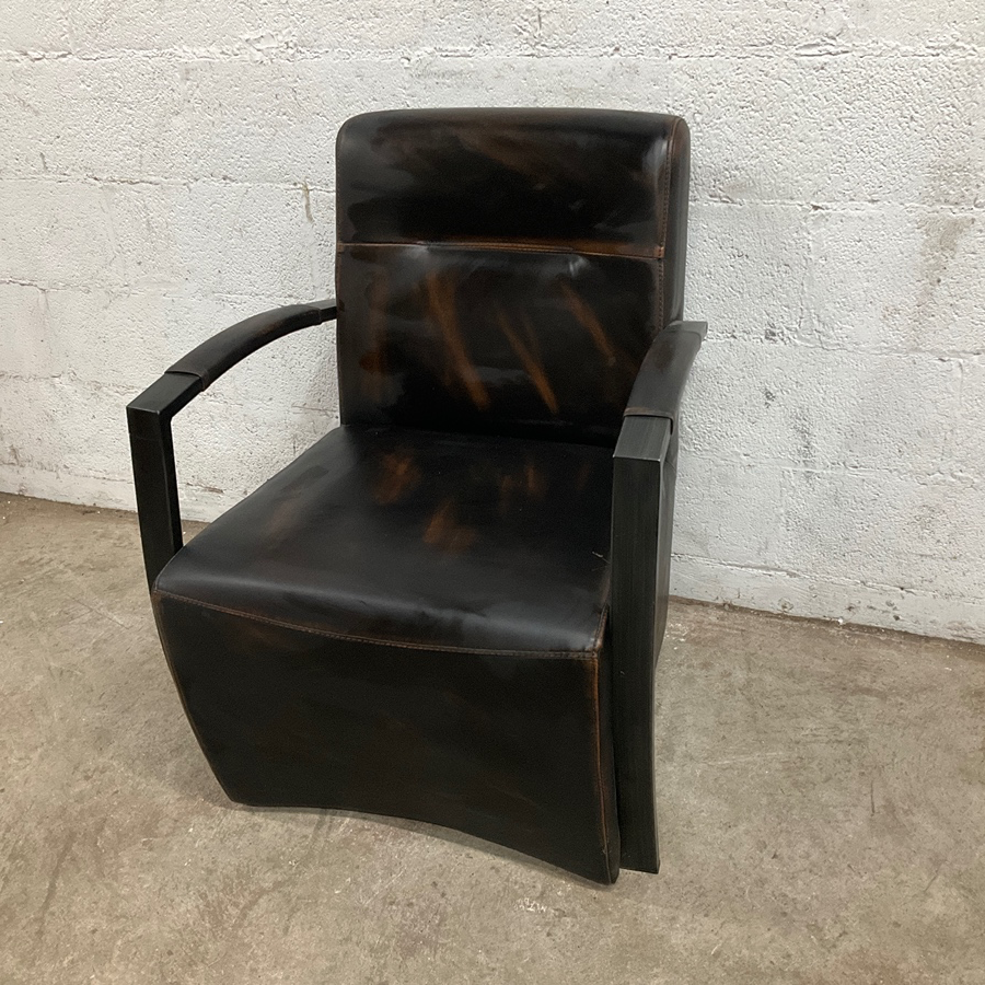 Retro-inspired leather armchair perfect for living rooms or offices. Durable with a sleek design.