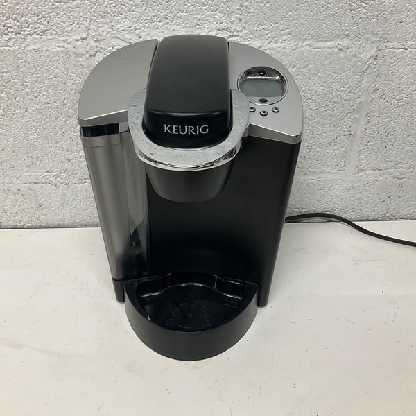 Single-serve coffee maker with modern design for kitchen use. Features quick brewing technology.