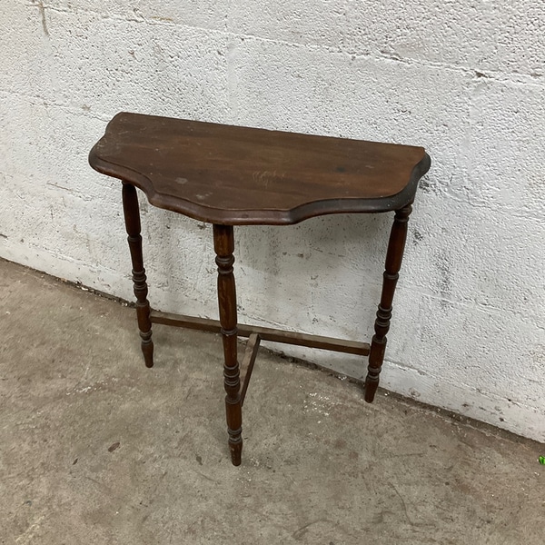 Classic wooden console table with turned legs. Ideal for entryways or living rooms. Mid-century style.