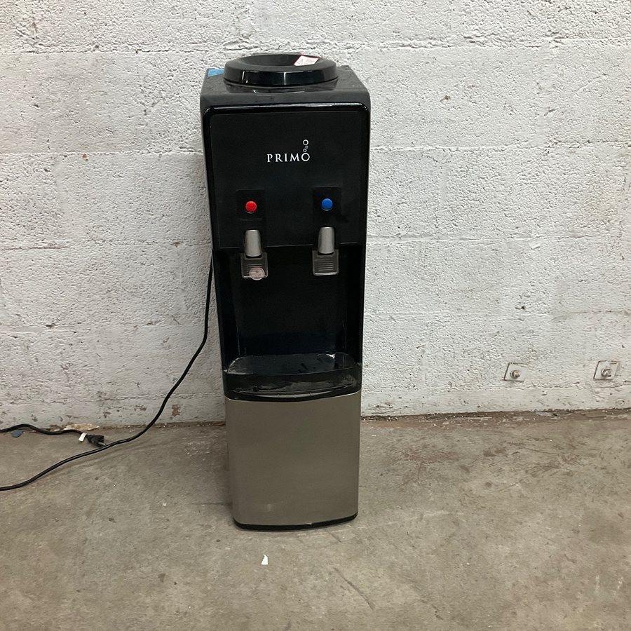 Freestanding water cooler for home or office, features hot and cold dispensers and sleek design.