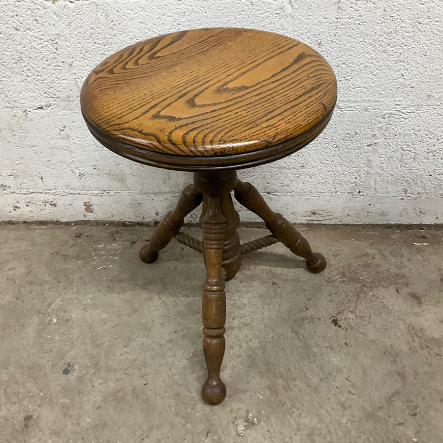 Classic wooden stool featuring a round top and sturdy tripod base. Ideal for rustic or vintage-inspired spaces.