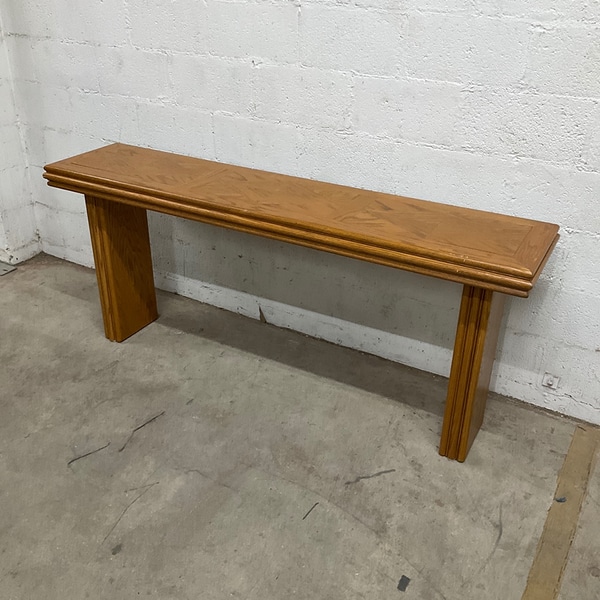 Vintage long Sofa Table made of oak wood. Perfect for hallways, entryways, or as extra seating in living rooms.