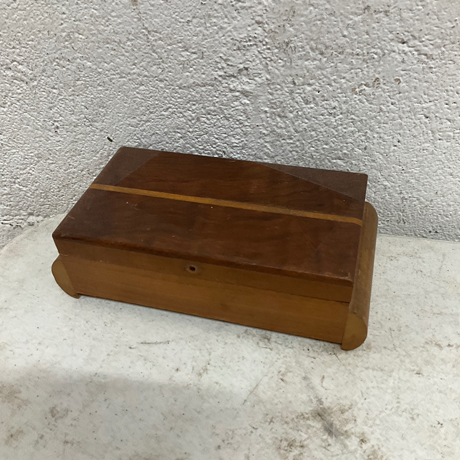 Mid-century rectangular wooden box for storage. Ideal for jewelry or small items. Warm brown finish.
