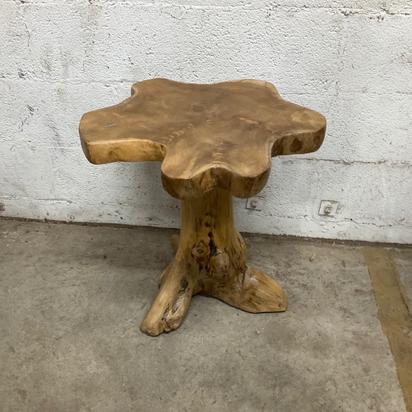 Unique rustic table made from natural wood, ideal for living rooms and cabins.