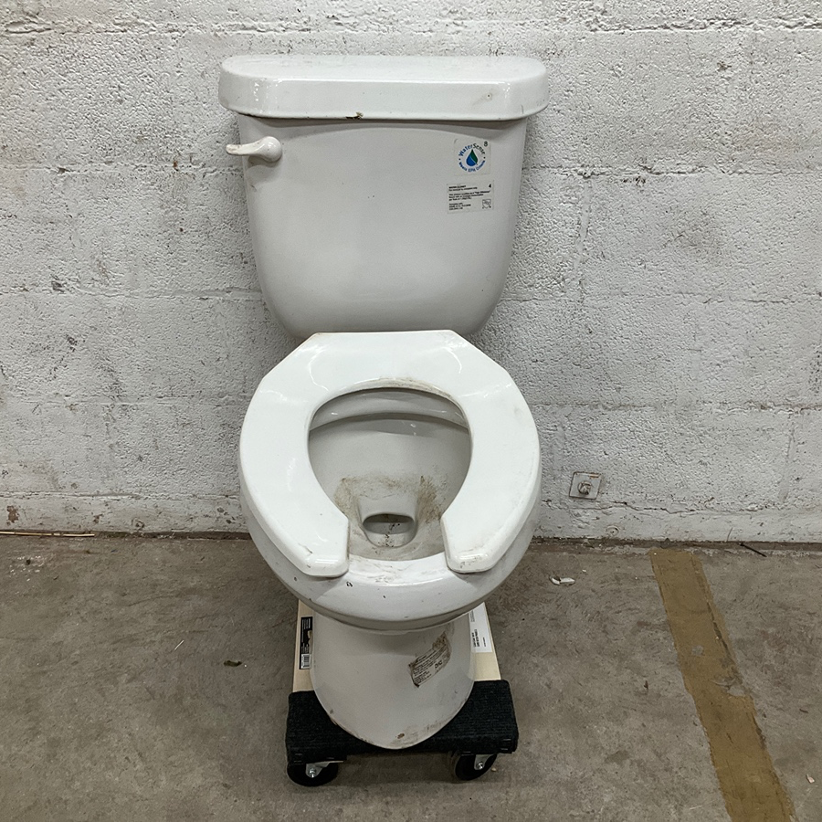Standard two-piece toilet ideal for bathrooms. Durable porcelain with a classic white finish.