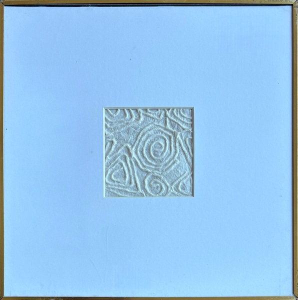 Contemporary wall art with embossed patterns. Ideal for modern or minimalist spaces. White & gold accents enhance elegance.