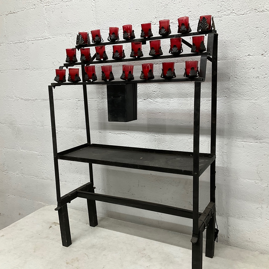 Sturdy metal workstation with tool holders. Ideal for organized storage in workshops or garages. Durable and functional design.