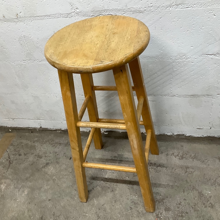 Wooden bar stool from the mid-century era, suitable for bars or kitchen counters. Made from solid wood, with a natural finish.