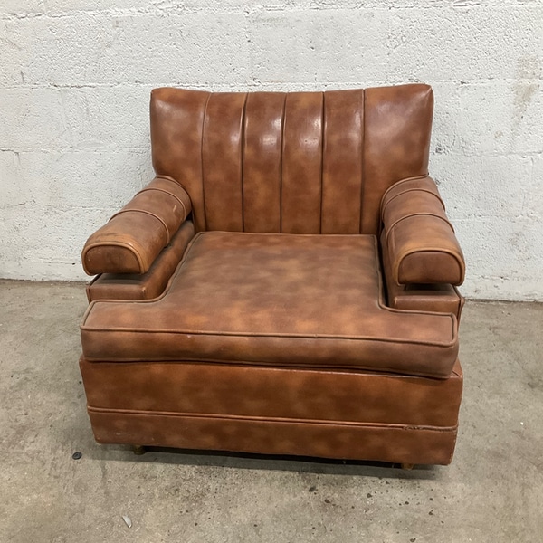 Mid-century leather armchair, perfect for living rooms. Durable and stylish with distinctive stitching.