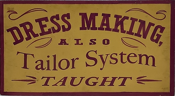 Retro sign promoting dress making and tailoring. Perfect for vintage decor and adding a nostalgic touch to any room.