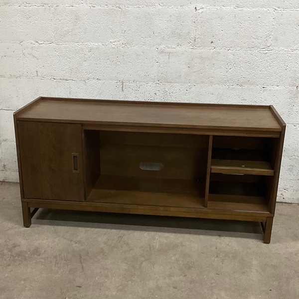 Wooden TV stand with vintage design. Perfect for living rooms or entertainment areas. Features multiple shelves.