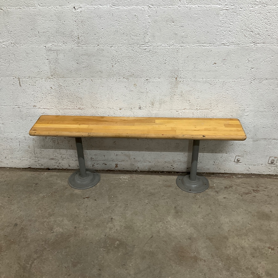 Simple industrial-style bench with wooden seat and metal legs. Ideal for lofts or garages.