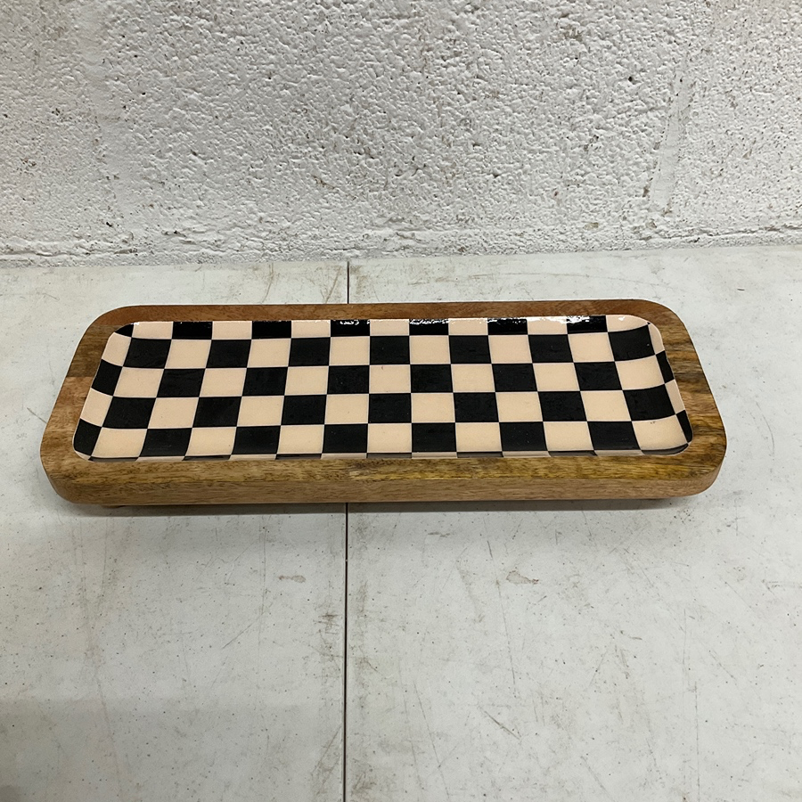 Stylish rectangular serving tray with a checkered pattern. Perfect for dining rooms or kitchens.
