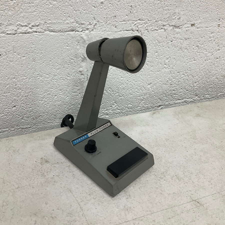 1980s desktop microphone with on/off switch and adjustable angle. Ideal for vintage electronics setups.