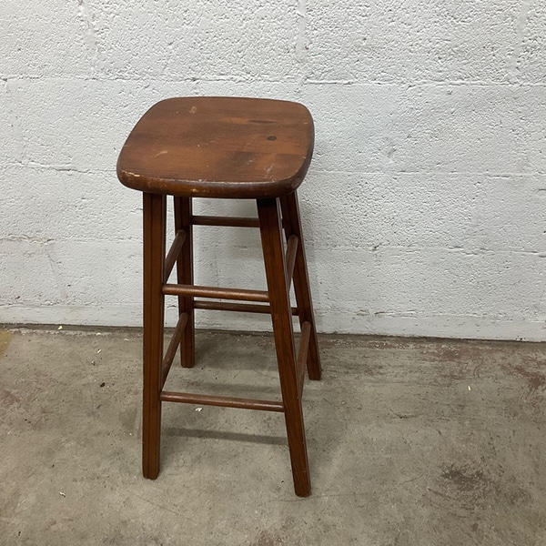 Wooden bar stool from likely mid-20th century. Perfect for a kitchen or home bar setting. Made from durable wood.