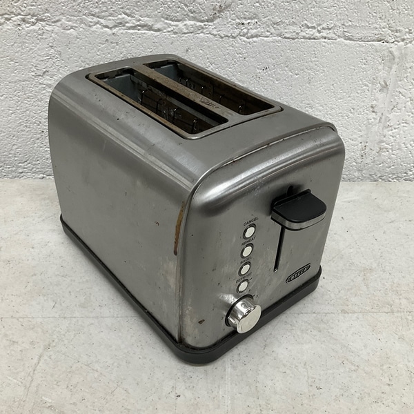 Retro-style toaster with two slots. Made from stainless steel, suitable for kitchens and breakfast areas.