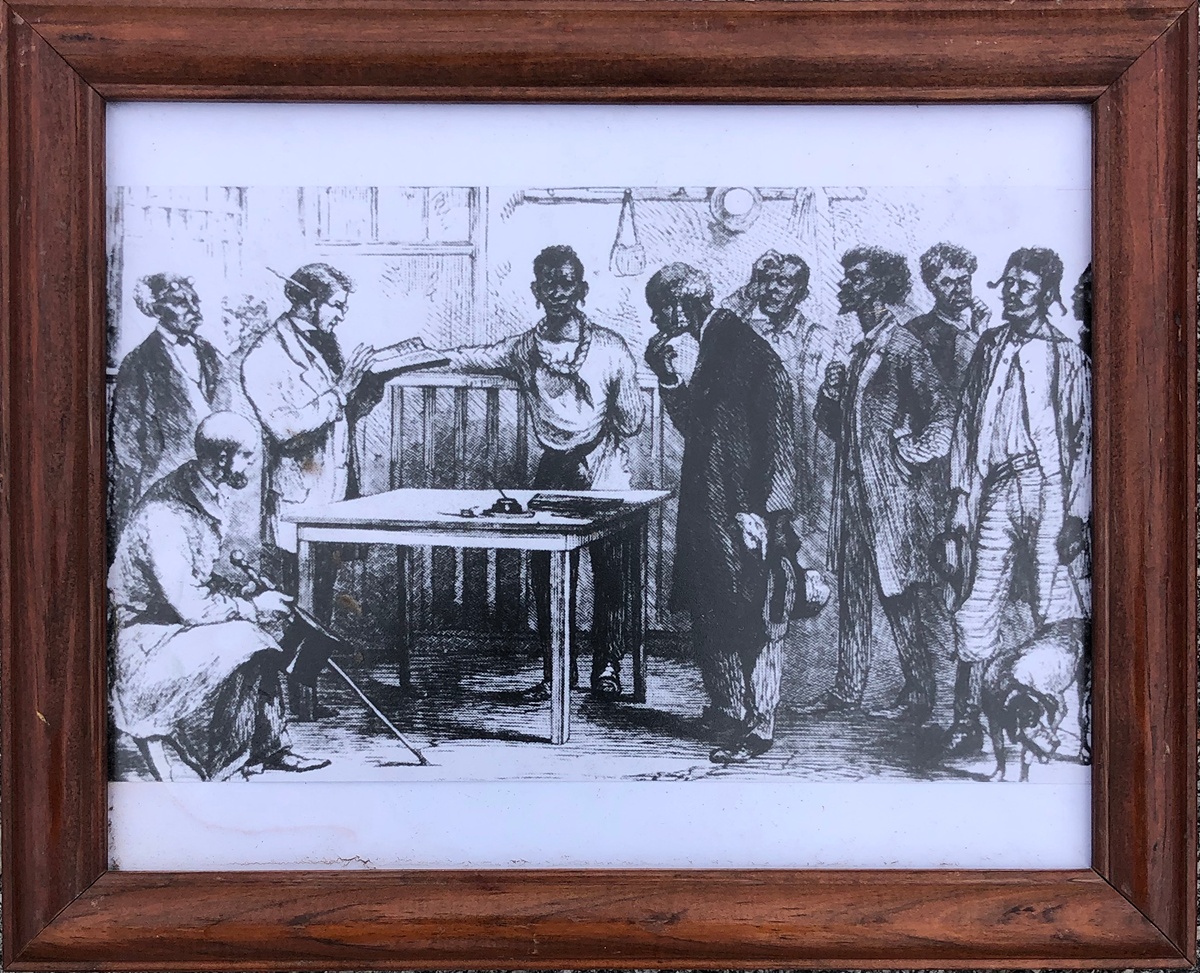 Framed sketch depicting a historical scene. Perfect for adding character to living spaces or study rooms.