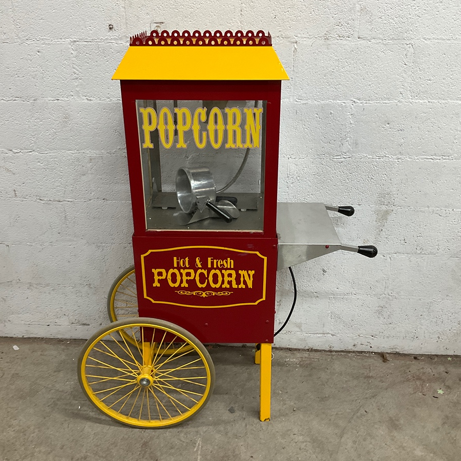 Classic vintage-style popcorn machine for home theaters or kitchens.