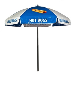 Commercial-style patio umbrella for outdoor settings. Ideal for fairs or street vendors. Durable and weather-resistant.