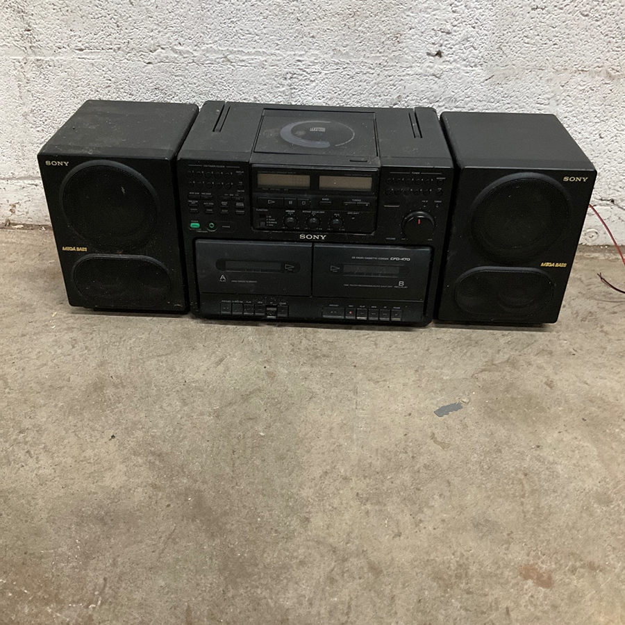 Classic Sony boombox with dual speakers and cassette deck. Ideal for retro-themed rooms or collectors.