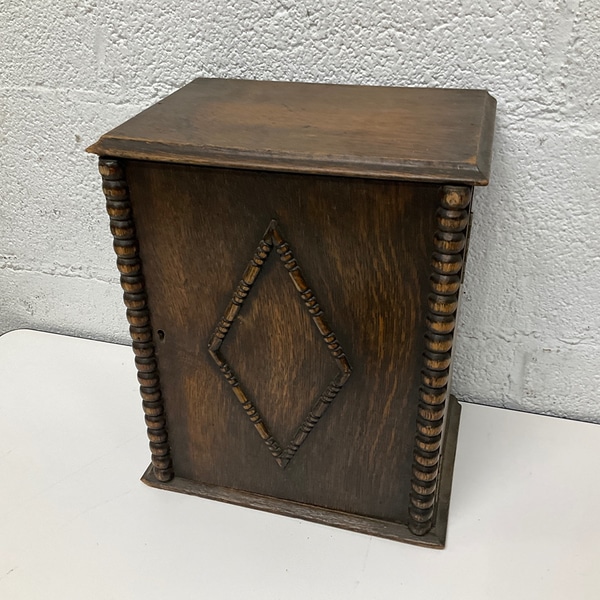 Classic wooden pipe cabinet with intricate detailing. Ideal for decor in study or living areas, adds vintage charm.