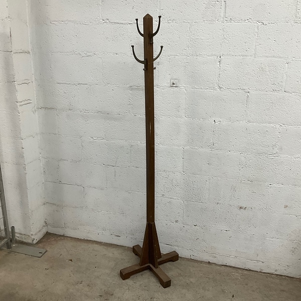 Classic wooden coat rack with multiple hooks. Ideal for entryways or hallways. Sturdy and functional design.
