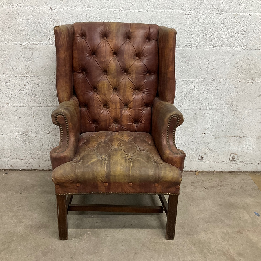 Classic leather armchair with tufted backrest. Ideal for living rooms or studies, adding a touch of elegance and history.