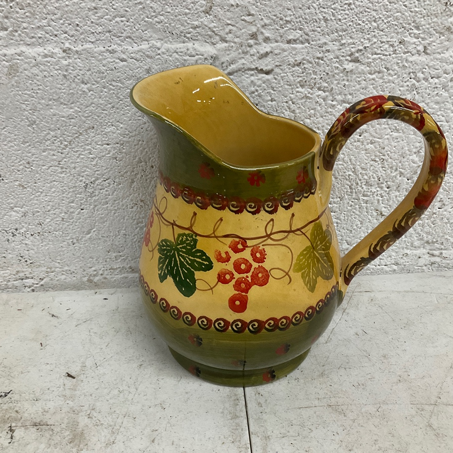 Charming vintage ceramic pitcher with floral and leaf patterns. Perfect for adding retro flair to any kitchen or dining room.