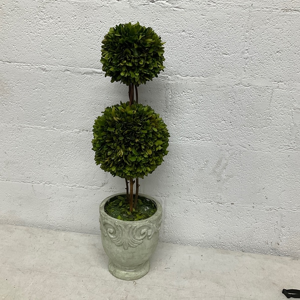 A lifelike artificial double ball topiary plant in a decorative stone pot, perfect for home or office decor.