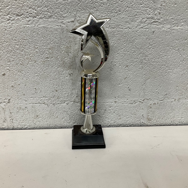 Silver trophy with a star design, ideal for awards or recognition. Features a modern aesthetic.