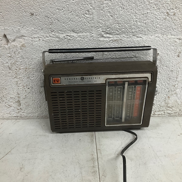 Retro 1960s General Electric transistor radio, ideal for collectors. Features AM/FM bands and classic design.
