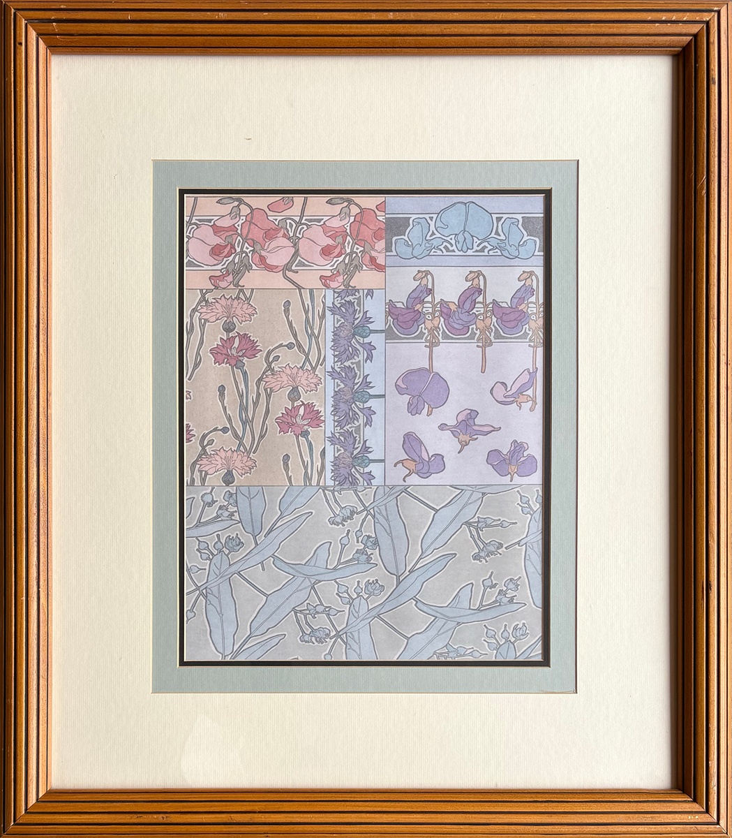 Artist: Alphonse Mucha (1860–1939). Vintage-style botanical art print in a wooden frame. Ideal for living rooms or hallways.