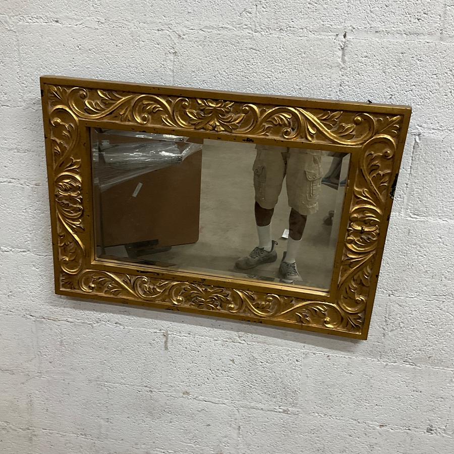 Elegant wall mirror with an ornate gold frame, ideal for living rooms and hallways. Adds a vintage touch.
