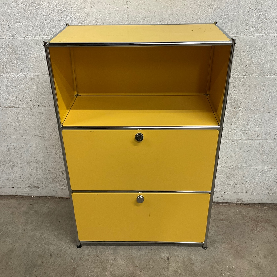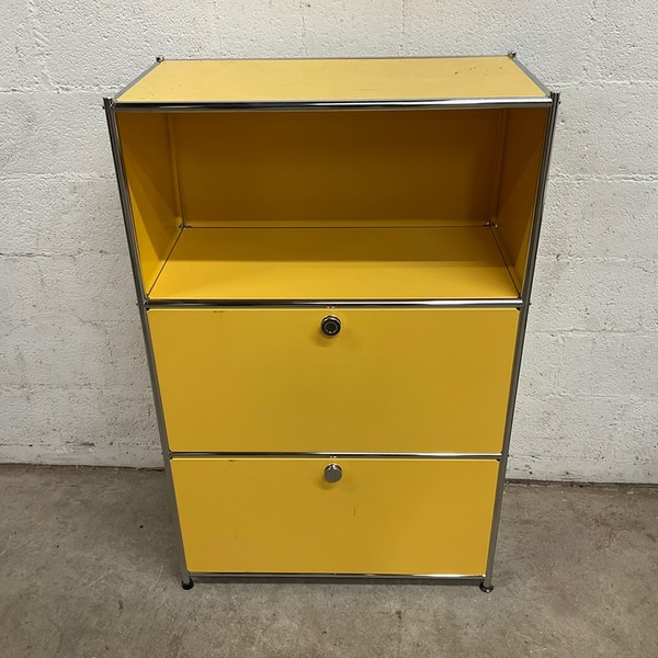 Modern metal storage cabinet with shelves. Great for offices or living rooms.