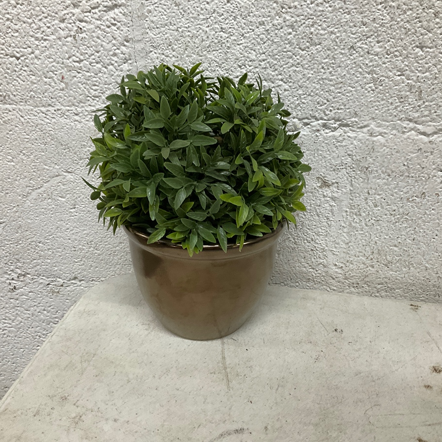 Lifelike potted plant in a sleek brown ceramic pot. Ideal for modern and minimalist decor styles.