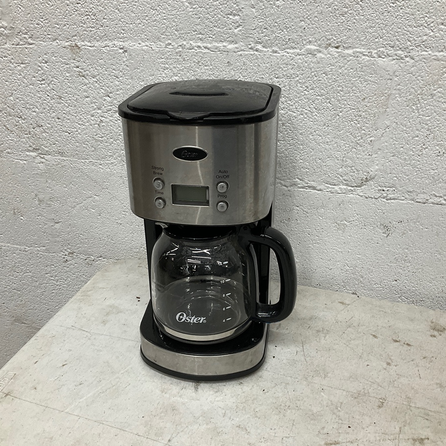 Programmable stainless steel drip coffee maker with a glass carafe. Ideal for kitchens and office spaces.