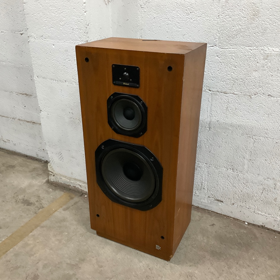 Classic wooden speaker with two drivers. Ideal for retro-themed living rooms or audio setups.