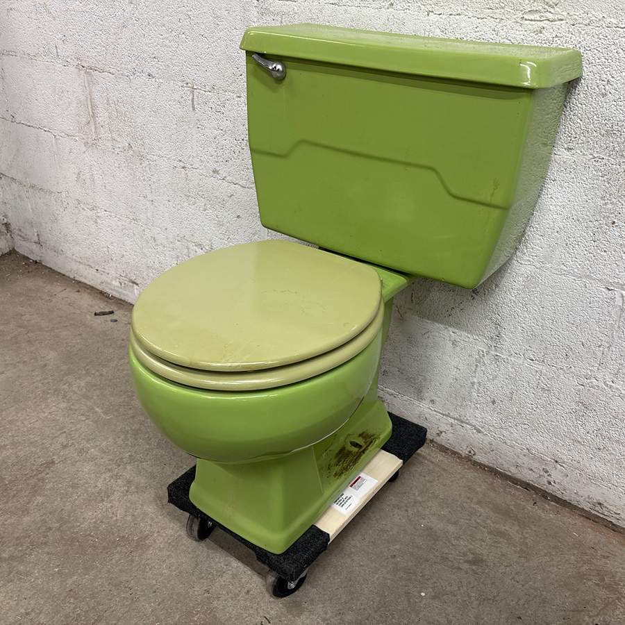 Retro-style green porcelain toilet, ideal for bathrooms with a vintage or eclectic theme.