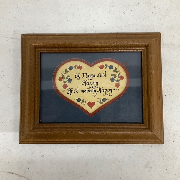 Heart-shaped quote art encased in a wooden frame, perfect for home decor. Suitable for kitchens or living rooms. (NOT CLEARED)
