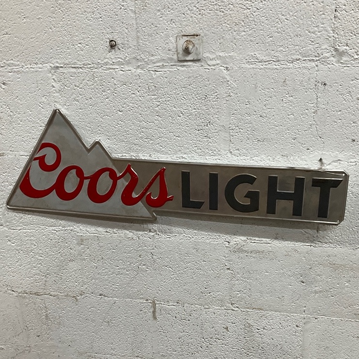 Retro metal sign featuring Coors Light logo. Ideal for bars, game rooms, or man caves. Classic branding.