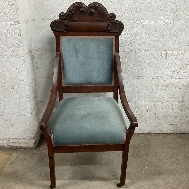 Ornate wooden frame with blue fabric offers a classic touch to living spaces. Ideal for vintage or traditional decor.