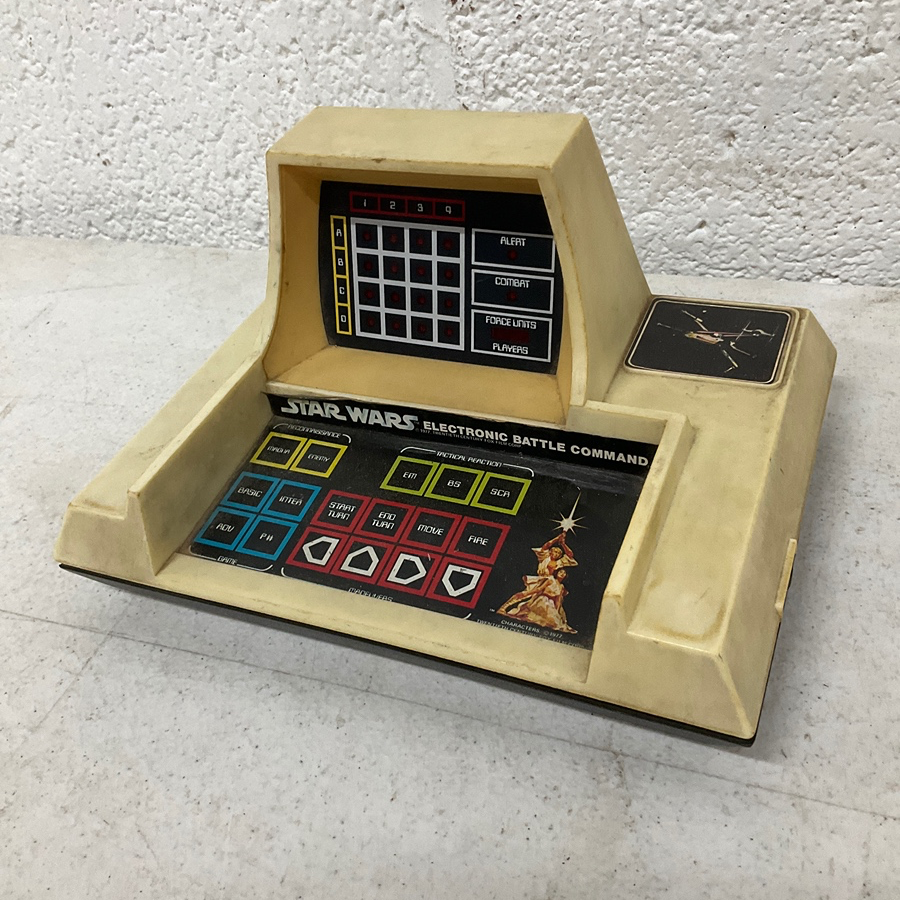 Vintage Star Wars electronic battle command game from the 1980s. Features buttons and lights. Made of plastic.