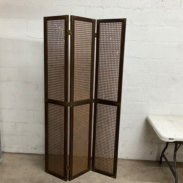 Vintage wooden room divider with woven pattern. Ideal for living rooms, bedrooms, or offices. Mid-century design. Hinged panels for flexibil...