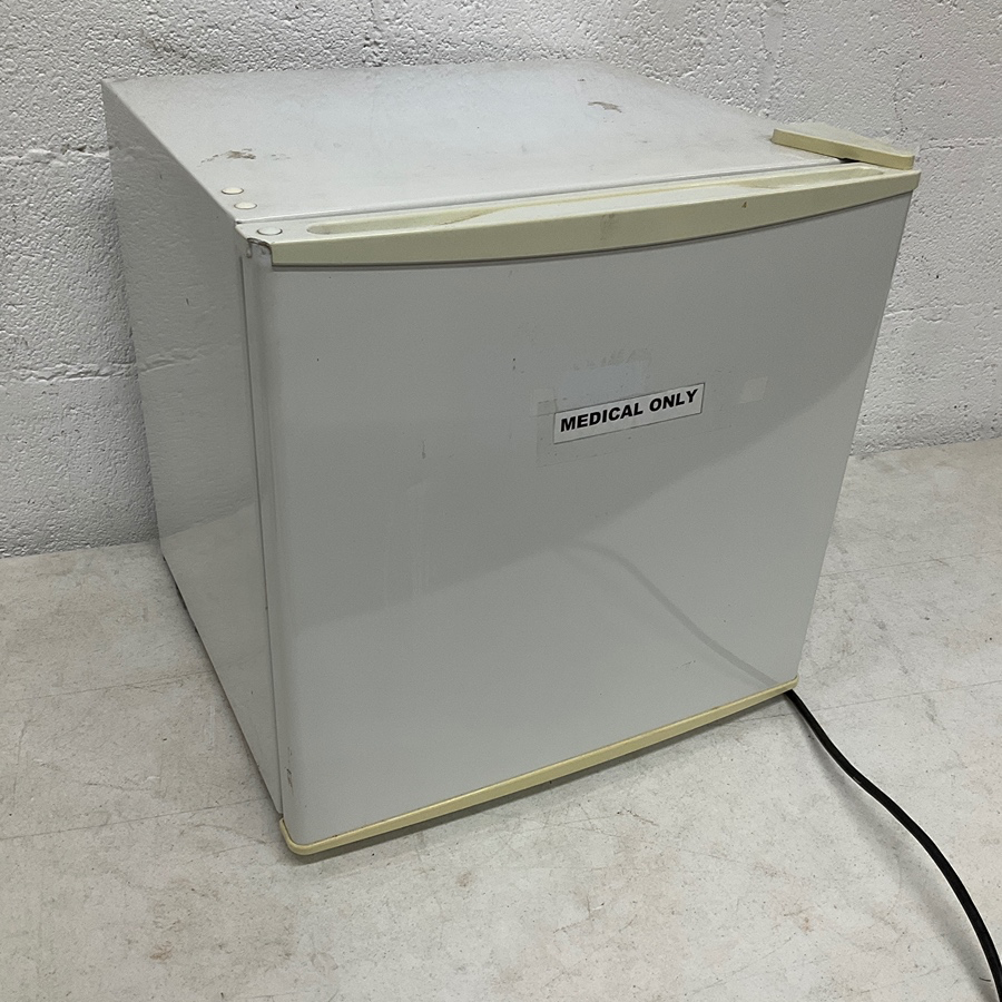 Small medical refrigerator suitable for storing medications and vaccines. Ideal for clinics, hospitals, and laboratories.