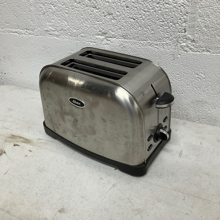 Sleek stainless steel toaster with 4 slots, adjustable settings, and a removable crumb tray. Ideal for kitchen use.